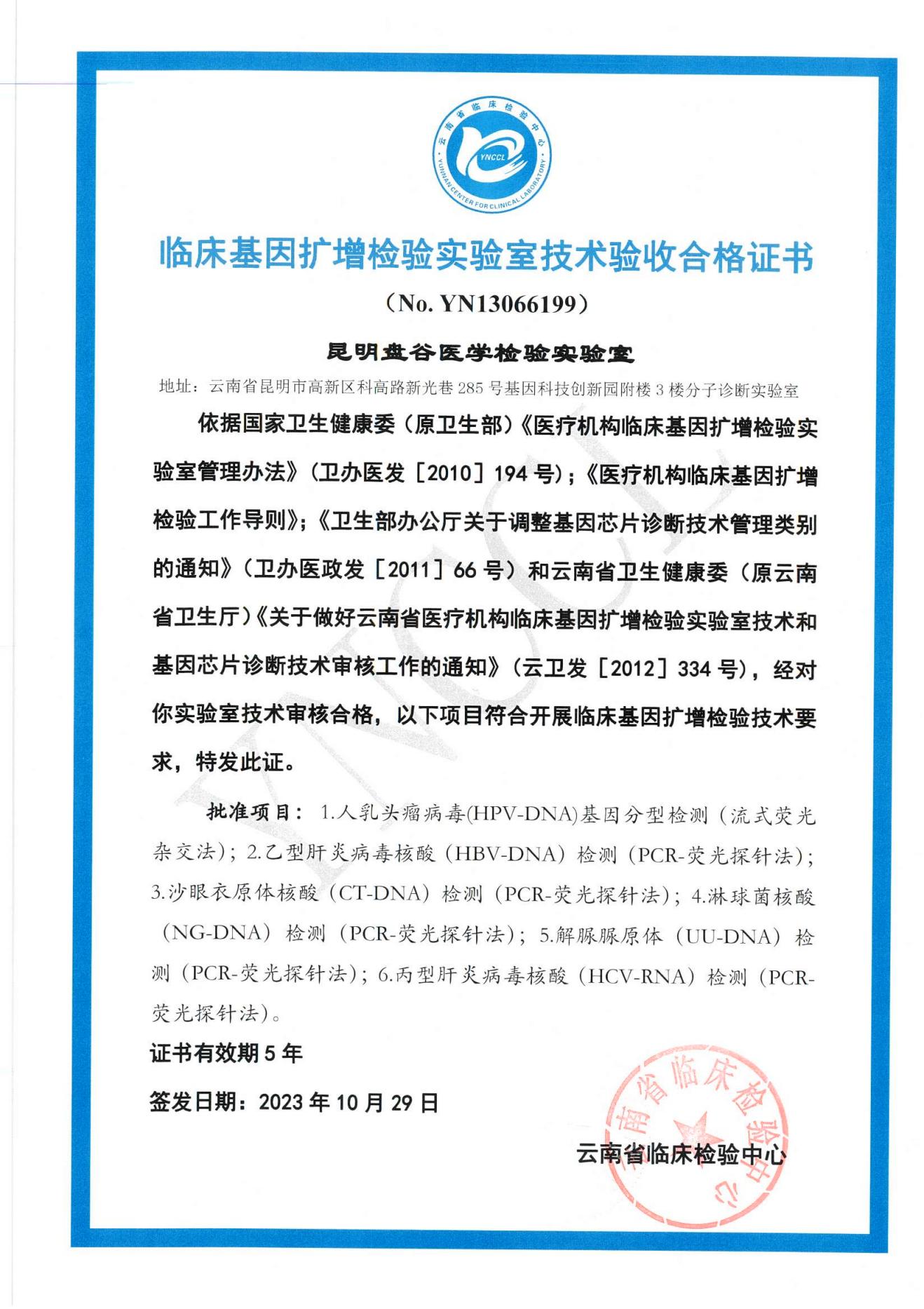基因扩增实验室证书